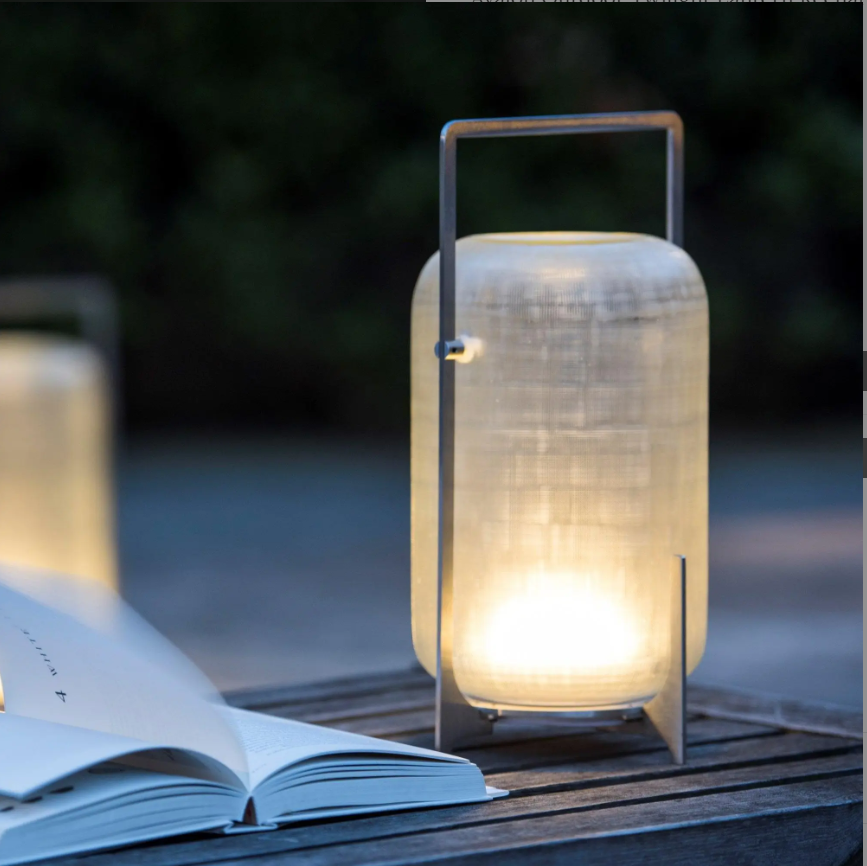 The Avalon Outdoor Twilight Lantern, available in three sizes, is a rechargeable table light that promises to add a touch