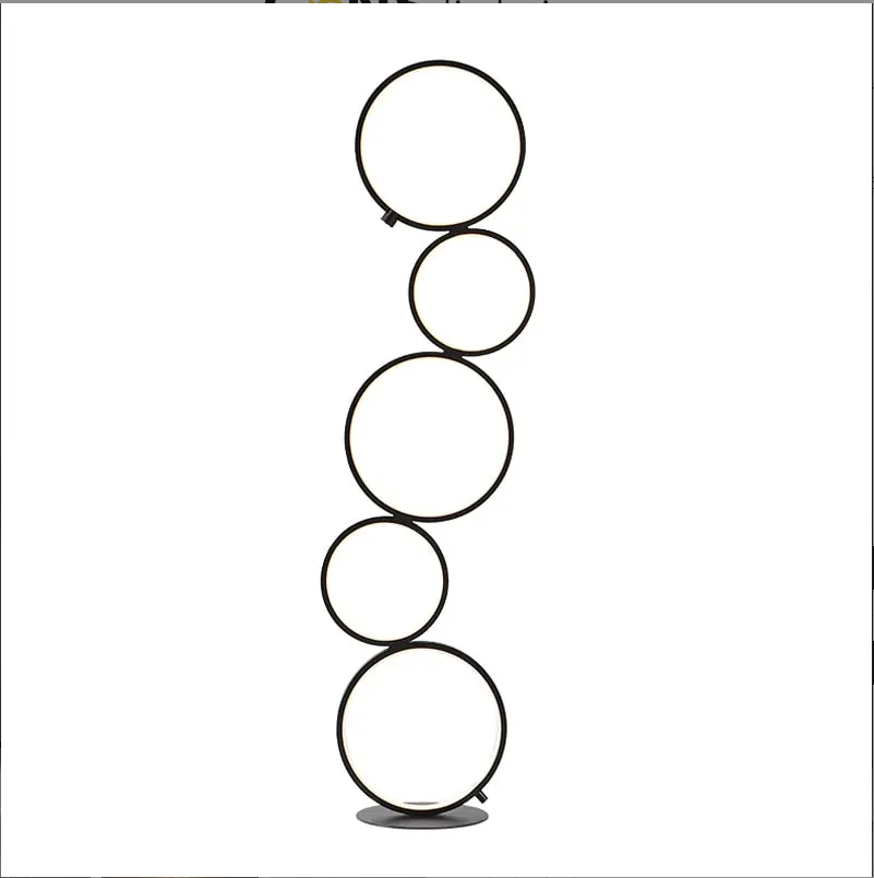 The Minimalist 5 Ring Cluster RGB Cordless Dimming Standing Light (Black/White) offers a captivating blend of modern design, customizable lighting