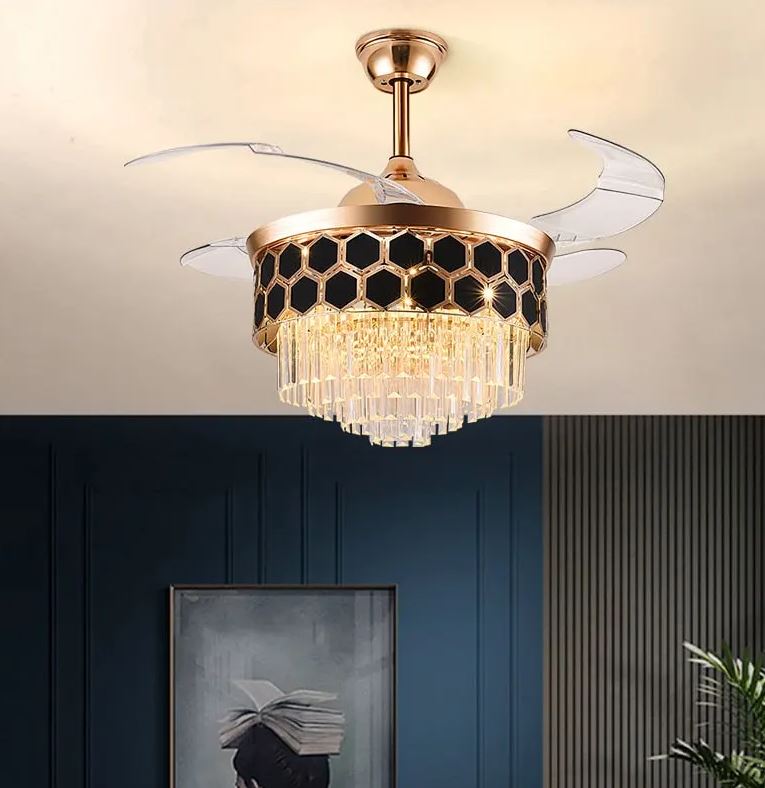 1. Luxurious Crystal Chandelier: The centerpiece of this ceiling fan is its stunning metal body crystal chandelier. The chandelier features high-quality crystals that catch and reflect light beautifully, creating a dazzling effect that enhances the room’s ambiance. This elegant design element makes the fan suitable for both modern and traditional interiors, adding a touch of glamour to any space.